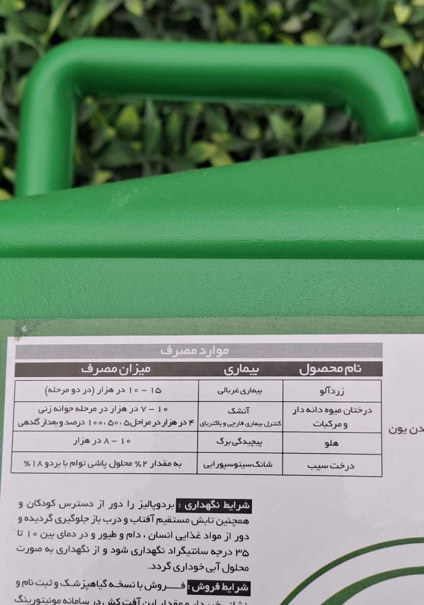 بردوفیکس قارچ کش و باکتری کش حفاظتی تماسی است که برای پیشگیری و درمان انواع بیماری های درختان میوۀ دانه دار،هسته دار،نیمه گرمسیری خزان دار،خشکباری، همیشه سبز، دانه ریز، سبزی، صیفی، زینتی وغیرمثمرتوصیه می شود. بردوفیکس بهترین قارچ کش و باکتری کش مسی با اثر حفاظتی، با LD۵۰>۴۰۰۰ mg/kg و جزو سالم ترین سموم معدنی است.