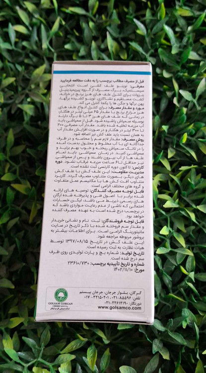 ۴۰% سوسپانسیون است یعنی ۴ برابر نومینی ماده موثر دارد. بهترین دز مصرف آن ۱۰۰ سی سی در هکتار است. اگر ۲۰۰ لیتر آب در هکتار زده شود و علفها ریز باشند و سمپاشی اصولی انجام شود ۶۵ سی سی در هکتار هم جواب میدهد