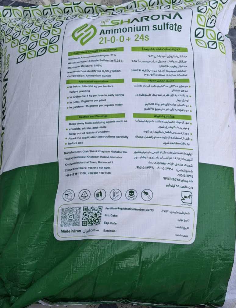 سولفات آمونیوم یک نمک غیر آلی است که بعنوان کود شیمیایی در کشاورزی کاربرد دارد. کود سولفات آموینوم معمولا حاوی ۲۴% نیتروژن به فرم آمونیوم و ۲۴ % گوگرد به فرم سولفات است.