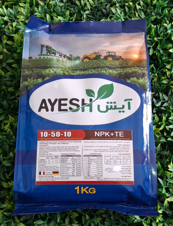 کود NPK + TE 10-50-10 دارای نسبت عناصر غذایی نیتروژن، فسفر و پتاسیم و عناصر ریز مغزی است است که به ترتیب 10%، 50% و 10% میباشد. این کود معمولاً برای بهبود رشد گلها و میوهها استفاده میشود، زیرا نسبت بالای فسفر به ریشهزایی و شکوفایی گیاه کمک میکند. نسبت بالای فسفر در این ترکیب به ویژه برای مراحل اولیه رشد گیاه و بهبود ریشهزایی بسیار حیاتی است. گیاهان به فسفر نیاز دارند تا به خوبی رشد کرده و از انرژی نور خورشید به صورت مؤثری استفاده کنند.