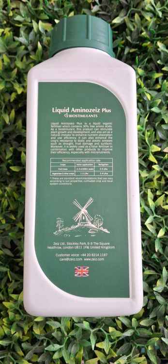 کود آمینو پلاس زایز انگلستان ۱ لیتری ترکیبی بی نظیر با ۳۰ درصد آمینواسید آزاد است که با به روزترین تکنولوژی تولید در دنیا ساخته شده و سبب تحریک رشد گیاه، افزایش مقاومت گیاه به تنشهای محیطی مانند سرما، گرما، شوری، یخبندان و خشکی و همچنین افزایش مقاومت به تنش های ناشی از آفات و بیماری های گیاهی می گردد. علاوه بر این استفاده از این کود به صورت محلول پاشی و آبیاری کمک شایانی به جذب سایر عناصر تغذیه ای نیز می شود.
