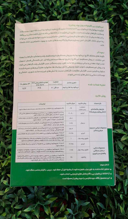 تریکوران پی نوعی کود و قارچکش بیولوژیک است که برای مبارزه با بیماریها و آفات قارچی و همچنین افزایش رشد در محصولات کشاورزی به کار گرفته میشود. این کودسم به صورت پودری بوده و قابلیت انحلال در آب را داراست.