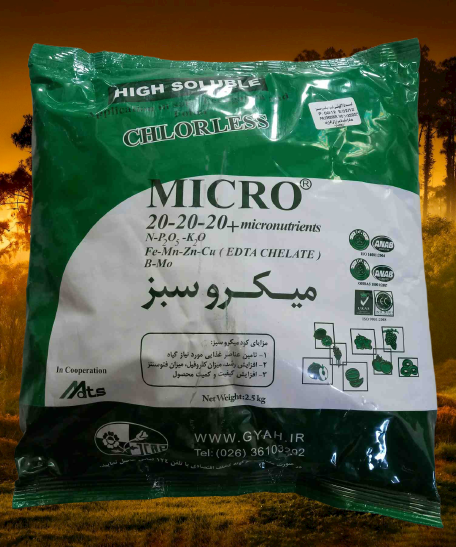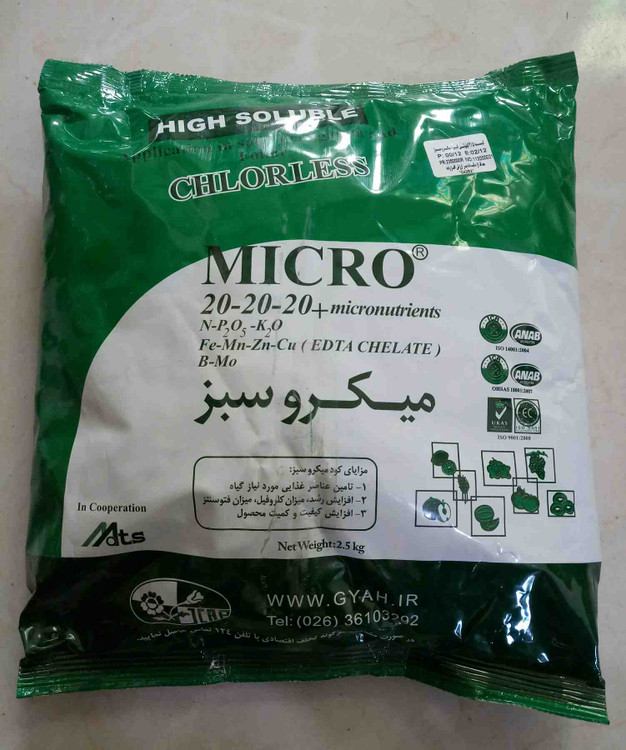 میکرو سبز کود ترکیبی حاوی عناصر کم مصرف , پرمصرف و کاملا محلول در آب می باشد.